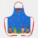 Cute Navidades Elf Squad & poinsettias con copos de nieve en el Apron Azul. El texto JOY puede ser personalizado.