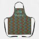 Este delantal tiene un diseño moderno de mediados de siglo de ovarios verde azulados conectados por líneas verde azuladas con círculos verdes claros en un campo marrón. ¿Quieres colores diferentes? Mándame un mensaje.