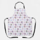 Este delantal tiene un diseño art decó de espirales en tonos violeta, azul claro y marrón, sobre un campo de blanco. Si quieres el mismo diseño con colores diferentes, envíame un mensaje.