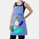 Este impresionante delantal tiene un lindo pingüino gris y blanco con ojos negros beady y pico y pies amarillos. El pingüino sostiene un gran pez azul con un pimiento y está parado sobre un trozo de hielo azul pálido. Al lado del pingüino hay un regalo abierto con una cinta festiva.
