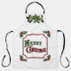 ¿Su restaurante o negocio necesita Holiday Aprons? Este hermoso Navidad Restaurant Apron tiene un tipo de letra vintage para "Feliz Navidad" con bayas y azulejos.