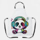 Feliz oso Panda con auriculares escuchando música. Estilo Kawaii.