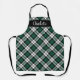 El apron festivo estacional presenta un patrón clásico de cacería escocesa de platillos escoceses de color verde, blanco y negro con un texto moderno de escritura blanca monograma que se puede personalizar con un nombre. Ya sea que esté cocinando Navidades para cenar, cocinando galletas de vacaciones o haciendo platos, se verá elegante esta temporada de vacaciones.