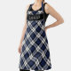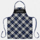 El delantal festivo estacional presenta un clásico patrón de platillos escoceses de color azul marino, negro y blanco, con un texto monograma de serif blanco que se puede personalizar con un nombre. Ya sea que esté cocinando Navidades para cenar, cocinando galletas de vacaciones o haciendo platos, se verá elegante esta temporada de vacaciones.