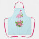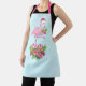 Un delantal con un flamingo de Navidades tropicales con un sombrero de santa rosa. Bajo sus pies, se encuentra un ramo de caña de caramelos con flores tropicales de bonito y bayas rosas. Un brote de holly en el pecho.