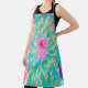 Delantal Flor de Dahlia verde y rosa caliente decorativa Ve