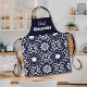 Delantal Floral de Pueblo en Azul Marino y Blanco