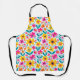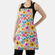 Un delantal adornado con flores audaces y coloridas en amarillos, rosas, rojos y azul verdoso cálidos, que aporta un encanto alegre y moderno a la cocina, repostería y momentos creativos en la cocina cotidianos. Un esencial elegante y listo para regalar para los amantes de los estampados florales brillantes y la decoración hogareña alegre.