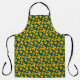 Patrón floral sin foco con flores amarillas pequeñas y puntos turquesas sobre fondo verde oscuro.