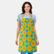 Delantal Flores audaces amarillas y Naranjas en fondo azul