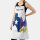 Hermoso delantal azul floral azul azul azul acuarela delantal. Texas, estado texano. Personalízalo con tu texto.