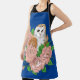 Delantal Flores rosadas de búho barn azul