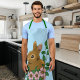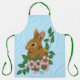 Un lindo conejo conejo marrón se sienta entre flores rosadas en un fondo azul claro