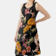 Flowers beautiful pattern seamless. Fabric texture repeat. Floral colorful sunflowers yellow element, with plants, leaves, lily, tulip, peony. Black background.