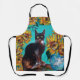 DELANTAL FLUJOS CON GATO NEGRO EN TURQUÍA AZUL