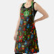 Delantal Folk coffee tools — emerald, red & cobalt on black