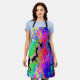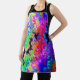 Este delantal presenta un diseño de arte fractal inspirado en el tinte con colores rosa, violeta, azul, negro, verde, agua y rojo.