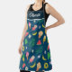 Este es un delantal personalizado con frutas de verano, este lindo patrón tropical que tiene frutas favoritas de verano como plátano, sandía, piña, helado, palmitos, hojas de monstera y palmitos.