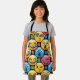 This personalized high-energy emoji faces kids' apron features a seamless, bold pattern of popular expressions—including laughing-crying, winking, and surprised faces— with vibrant yellows, blues, and pinks.
