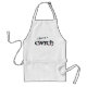 Un delantal blanco de algodón con la palabra galesa 'cwtch', que significa 'abrazo' o 'abrazo' en un guión celta, lleno de un patrón floral de bonito.