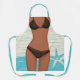 Solo por diversión cuerpo bikini femenino en un bronceado oscuro o chica de color con un moderno diseño de estrella de playa verde azulada de fondo WhimsicalArtwork™