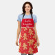 Esto es divertido y personalizado patrón de galletas de hombre de Gingerbread en diferentes expresiones graciosas con pequeños copos de nieve sobre fondo rojo brillante. Es un gran diseño para chefs y comensales para la temporada de Navidades y tiene un nombre personalizado que puede cambiar fácilmente a nuestro nombre haciendo clic en personalizar