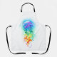 Gran medusa de gelatina, de dibujo artístico y brillante, con largos tentáculos sobre blanco, pintados con fondo multicolor de acuarela. Marisco arcoiris.
