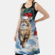 Delantal Gato persa sentado en nieve con Gorra Navidad
