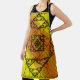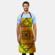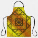 Tres estilos de fractales dibujados a mano, entre ellos los triángulos de Sierpinski, las juntas de Apolonia y un diseño cuadrado de temática similar, componen las capas de esta mandala geométrica, sobre un gradiente amarillo brillante y naranja.