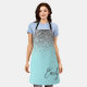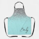 Delantal de Monograma de Nombre de Metal Cepillado con Glitter Brillante Azul Acuático Teal Femenino. Esto hace el regalo perfecto para cumpleaños dulces 16, boda, despedida de soltera, aniversario, baby shower o fiesta de soltera para alguien que ama el lujo glamoroso y los estilos chic.