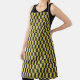 Abstract graphic of geometric design, displays textured, gold panels, shaded with brown, yellow, and white-layered with panels of black, and digitally, arranged in a checkerboard pattern.