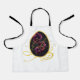 Elevate your holiday kitchen style with this sophisticated Easter apron. The design features a beautifully detailed purple iris flower nestled inside a golden egg outline, set against a sleek black background. The luxurious gold typography and botanical elements create a modern aesthetic perfect for Easter brunch or spring baking. High-quality print with a minimalist yet opulent feel, making it an ideal gift for garden lovers and home chefs who appreciate artistic floral decor.