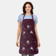 This Gothic Burgundy Floral Skulls Apron features intricate hand-drawn skulls intertwined with elegant roses, leaves, and botanical flourishes in detailed black ink set against a rich deep burgundy background. Behind the skull and floral artwork, a subtle transparent gradient pinstripe pattern adds depth, texture, and refined gothic elegance. The layered design blends dark romance with sophisticated detail, making it perfect for goth moms, Halloween hosts, alternative style lovers, and fans of moody floral aesthetics. Personalize with a name.
