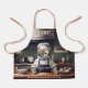 Un bonito delantal del chef que cuida una gatita graciosa tratando de hacer un desastre en la cocina. Agradable para los niños y los adultos.