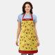 Este delantal de tela tiene un estilo memphis con un tema de granja de pollos. En el diseño se utilizan patrones geométricos modernos para colorear gallos y pollos en un pastor con fondo de alambre de pollo amarillo. Hay dos grandes gallos y diez gallinas en este patrón en este delantal. Un divertido patrón de pollo actualizado para un estilo de país moderno. Perfecto para cualquiera que esté loco por el pollo. Puede hacer que el patrón sea más pequeño o más grande, y personalizar este delantal con su nombre o frase o dejarlo en blanco.