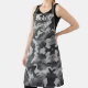 Este delantal gris se acentúa con un patrón de camuflaje y se personaliza aún más con un nombre de negocio, haciéndolo perfecto para la marca.