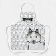 El original ilustracion personalizado de Destei de un lindo color de pieballo gris, Perro de raza Husky Siberiano. El diseño del perro se coloca como un patrón en el fondo del delantal así como un retrato de cabeza más grande en el fondo. La parte superior tiene una silueta de hueso de perro negro junto con un área de texto personalizable para un nombre.