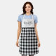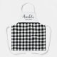 Un elegante, moderno y personalizado delantal. Este diseño tiene un patrón de gingham en blanco y negro con un texto de escritura elegante para su nombre y un pequeño tipo de estilo clásico debajo para su ubicación. Una casa de campo sencilla, moderna y de diseño.