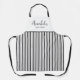 Un delantal sencillo, moderno y personalizado. Este diseño tiene rayas verticales en blanco y negro con una plantilla de texto de guión elegante para su nombre y un pequeño tipo de estilo clásico a continuación para su ubicación.