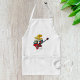 Una guitarra eléctrica de rojo con un tambor detrás. Este diseño parece realmente efectivo en estos Apron