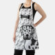 El original ilustracion personalizado de Destei de un lindo arlequín color de abrigo Perro de raza Great Dane. El diseño del perro se coloca como un patrón en el fondo del delantal así como un retrato de cabeza más grande en el fondo. La parte superior tiene una silueta de hueso de perro negro junto con un área de texto personalizable para un nombre.