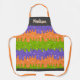 Este delantal personalizado tiene diseño de helados de Halloween con tres diferentes helados de fusión en colores verde, naranja y morado, conos de gofre negro y divertidas rociadas de halloween. También hay caras espeluznantes gritando en el helado. Personalice esta plataforma con un nombre. También puede hacer que el patrón sea más pequeño o más grande en esta plataforma.