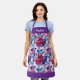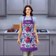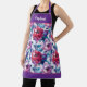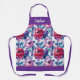 Añade un toque floral a tu cocina y cocina con este hermoso delantal personalizado con peonías rojas y rosas con muchos toques de violeta brillante, incluyendo las correas.