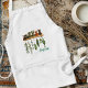 Manzana blanca con bolsillos. El diseño son hierbas en una estantería con más hierbas que cuelgan para secarse debajo de la estantería. Añadir texto en el guión verde azul debajo de la imagen. "Herbalista" es el texto de la muestra, o añádase un nombre. El texto se alinea a la derecha.