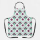 Este delantal tiene un diseño art deco de diamantes de color verde marino con líneas diagonales y diamantes de berenjenas en un campo de blanco.