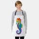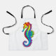 Arco de arcoiris, caballito de mar poligonal sobre fondo blanco. Tatuaje brillante.