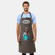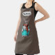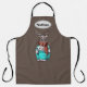 El delantal con temática navideña y divertida presenta ilustracion de ciervo hipster con suéter y bufanda vacacional, con el nombre de personalizable ovalado sobre fondo marrón