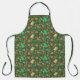 Apron con adorable patrón, suministros de costura - tijeras, botones, rollos de hilo, agujas - esparcidos en campo verde oscuro. Este diseño, elaborado a partir de un collage de papel hecho a mano, hace grandes regalos para artesanos y alcantarillas. © Julia Khoroshikh www.juliakhoroshikh.art #kitchentextiles #aprons #zazzlemade #homehobbies #haberdashery