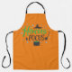El delantal de Fun Halloween muestra caldero de brujas, gorra y escoba con el texto "Hocus Pocus" en el fondo naranja