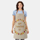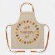 Este impresionante delantal presenta una imagen de arte digital de una serie de hojas de roble en tonos rojos, naranjas, amarillos y verdes dispuestas en un círculo alrededor de un texto con letras alternas de rojo, amarillo, naranja y verde que dice Feliz Día de Acción de Gracias.